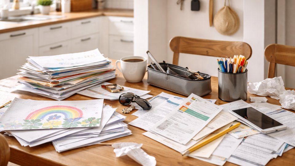 De keukentafel is in veel huizen het kloppend hart, maar ook de plek waar papierwerk zich opstapelt. Post, schoolbrieven, tekeningen en bonnetjes zorgen voor visuele onrust en liggen precies daar waar je wilt eten of spelen. Met een kleine “landing strip” voorkom je dat het overal blijft liggen.
