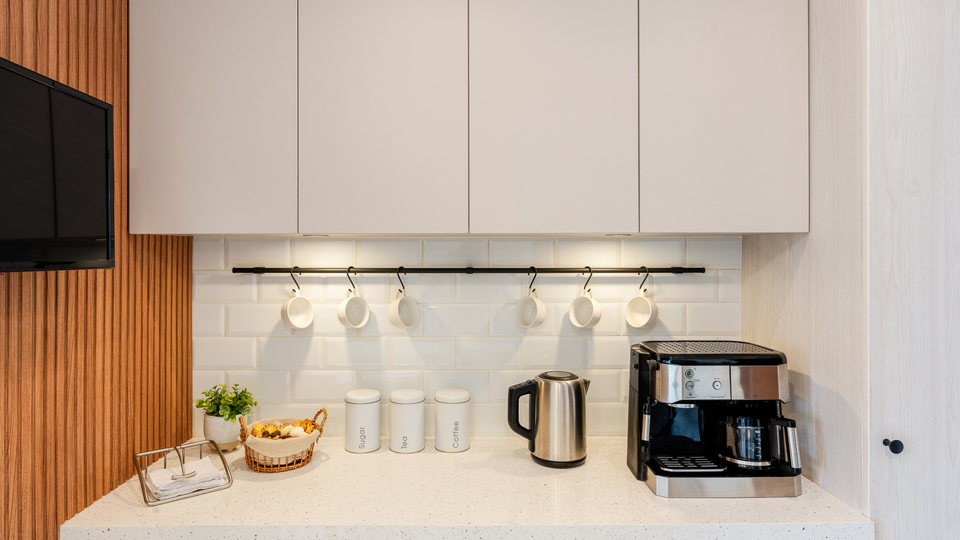 Bij een koffiestation zet je mokken, koffie of thee, lepels, suiker en filters of capsules bij elkaar. Het liefst dicht bij de watervoorziening of het stopcontact van je koffiemachine. Een ontbijtstation bundelt kommen, ontbijtgranen, broodbeleg en een broodplank op één plek, zodat de ochtendspits soepeler verloopt.