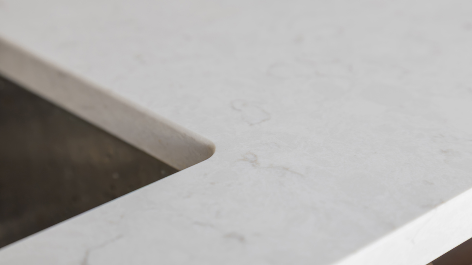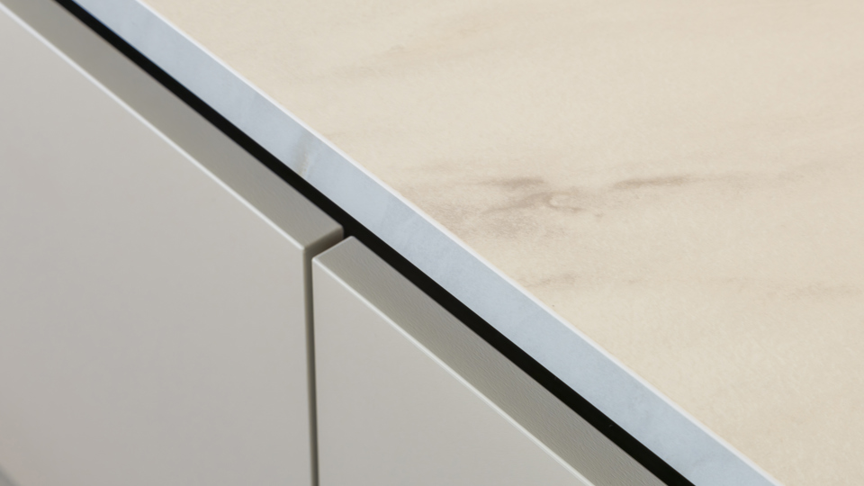 Liever een stenen werkblad? Ga dan voor composiet of keramiek. Composiet is er mat of gepolijst. Mat is gevoeliger voor vlekken, gepolijst juist niet. Melissa: “Gepolijst heeft een beschermlaagje. Dat maakt het onderhoudsvriendelijk. Het glanst, dat moet bij je passen.” Keramiek is hardgebakken steen. Je kunt er dus best een hete pan op zetten. “Het is krasvast en vlekbestendig. Maar wel stootgevoelig. Krijgt het een flinke klap, dan kan er een stukje werkblad afbreken.”