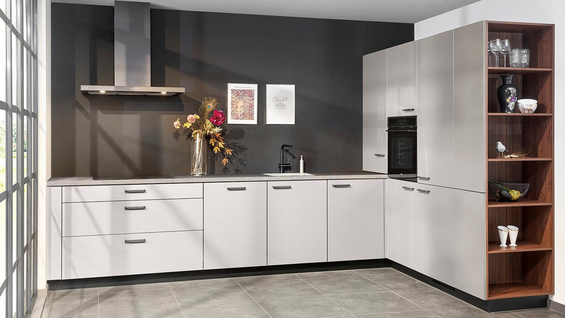 Kijk maar eens goed naar het verschil tussen een grijze keuken en een grijze ton sur ton keuken. Dit kleurenspel kun je verder doortrekken in de keukenaccessoires. Zo laat een moderne, zwarte kraan de grijze keuken echt schitteren.