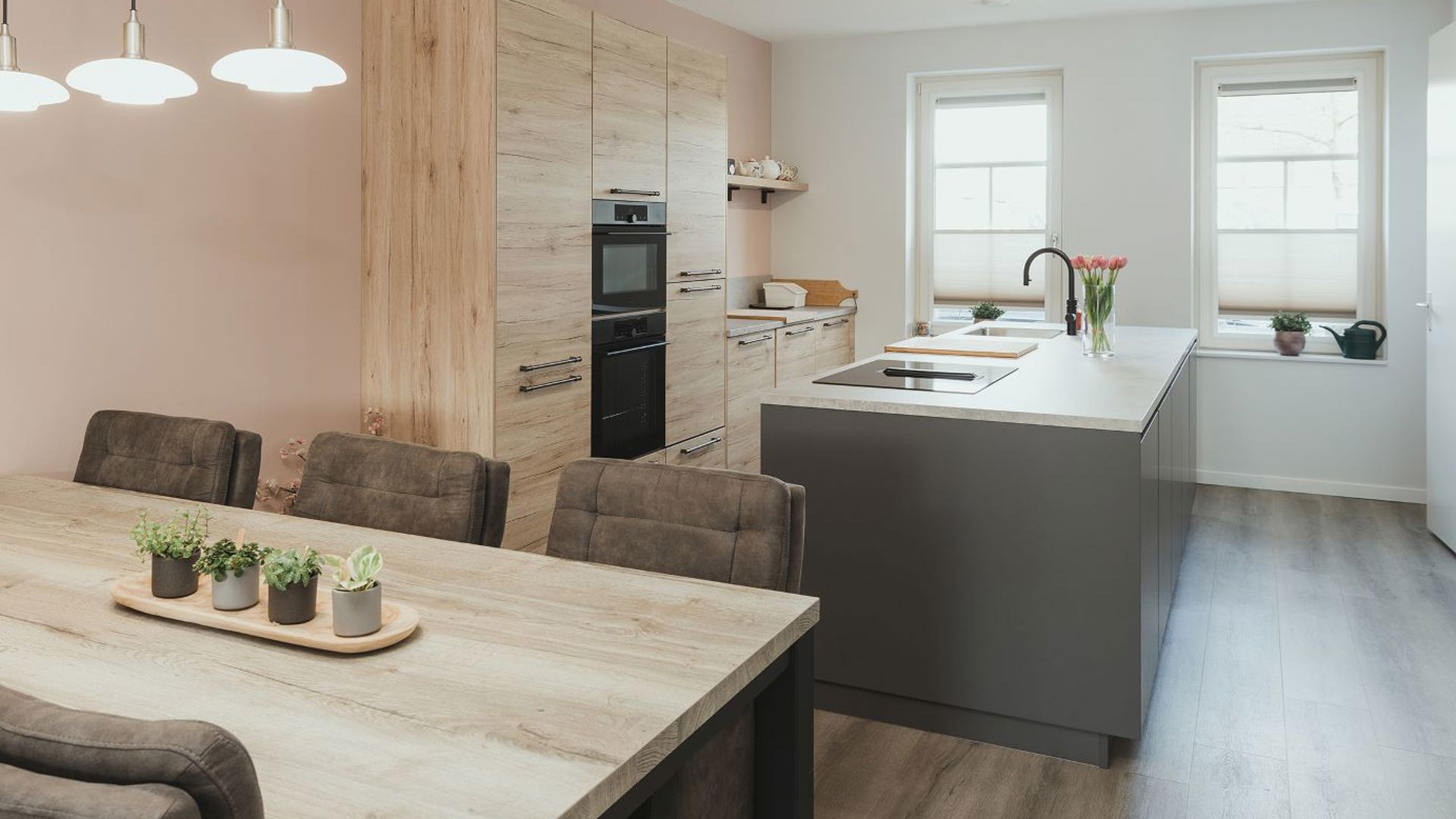 Met een open keuken houd je contact met de rest van de ruimte. Jenneke: “Het zorgt voor verbinding. Tijdens het koken houd je makkelijk de spelende kleintjes in de woonkamer in de gaten, help je een kind aan de eettafel met z’n huiswerk of praat je mee met de visite.”