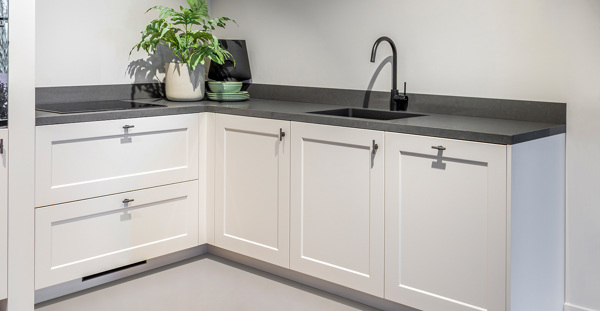 Opzoek naar een minimalistische klassieke keuken? Deze klassieke keuken is uitgerust met hoogwaardig Pelgrim apparatuur en heeft genoeg ruimte voor al uw keuken spullen. De rustige keuken staat in een hoekopstelling. Met een prachtig contrast van witte fronten en een donker werkblad.