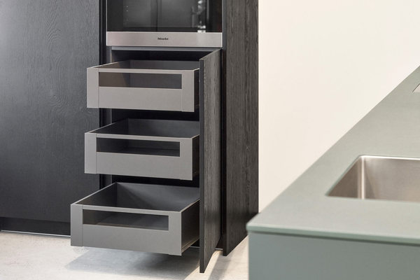 Miele: koelkast, vaatwasser en multifunctionele oven. Novy: inductiekookplaat met afzuiging