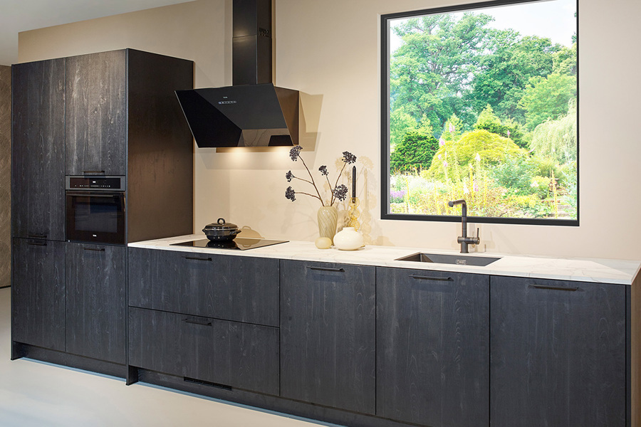 De hoogwaardige apparatuur van Neff tilt het kookcomfort naar een hoger niveau. Van een kookplaat met geïntegreerde afzuiging tot een stoomoven, combi-oven, warmhoudlade, koel-vriescombinatie en vaatwasser: alles is naadloos geïntegreerd in het ontwerp en straalt pure luxe uit.