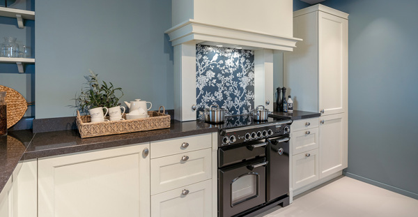 Ontdek de landelijke charme van deze witte hoekkeuken. De mat witte fronten en het Belgian Blue werkblad stralen pure klasse uit. Met apparatuur van de topmerken NEFF en Falcon is koken een genot. Het tijdloze design en de duurzame materialen zorgen ervoor dat u jarenlang van deze keuken kunt genieten.