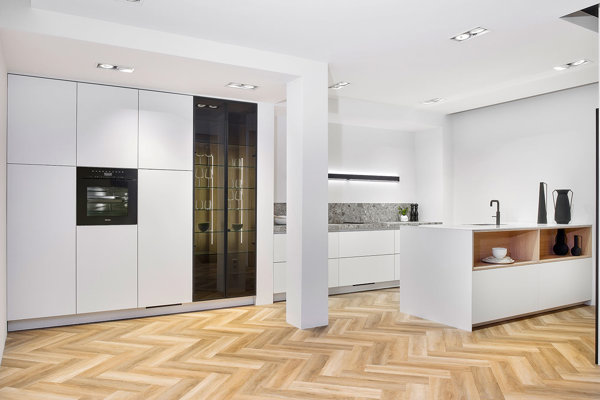 - Apparatuur: Miele: inductiekookplaat met afzuigsysteem, koelkast, combistoomoven en vaatwasser