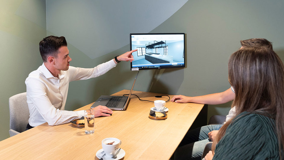 In onze showroom kunt u gebruik maken van een ergonomisch hoog-laag systeem om uw persoonlijke werkhouding te bepalen. Ook demonstreren we de werking van alle keukenapparatuur zodat u er vertrouwd mee kunt raken.