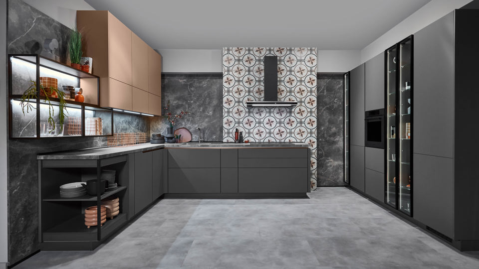 Gebruik je veel zwart, dan is tegenwicht belangrijk. Goede verlichting, bijvoorbeeld spots onder de bovenkastjes, maakt een wereld van verschil. Een lichte wandkleur of een warme houttint in werkblad of vloer haalt de scherpte uit het geheel en houdt de keuken in balans.