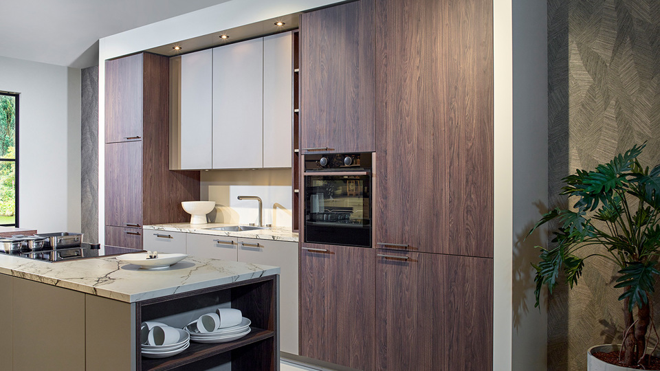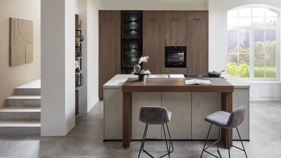 Hout speelt een hoofdrol in deze stijl. Denk aan lichte eiken fronten, fineer of houtlook materialen gecombineerd met natuursteen of keramische werkbladen. De focus ligt op pure, eerlijke materialen met een zachte uitstraling en sluit perfect aan bij het duurzaamheids gedachtegoed van Japandi.