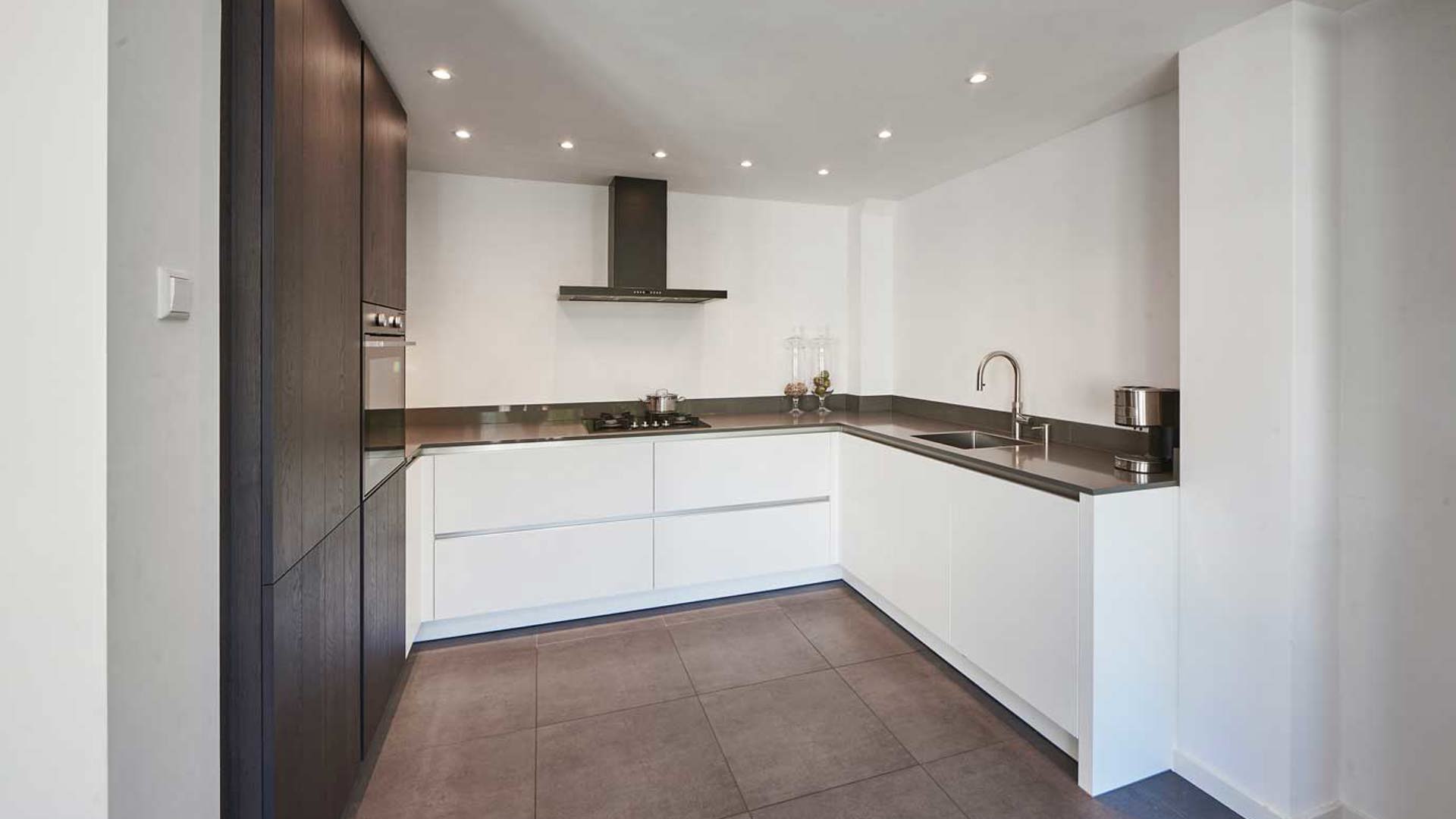Het uitgangspunt is dat de strakke keuken moet passen binnen de huidige keukenruimte. En, bovenkasten mogen wegblijven, volgens Ina.