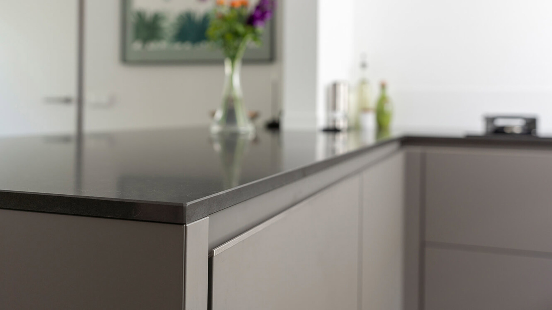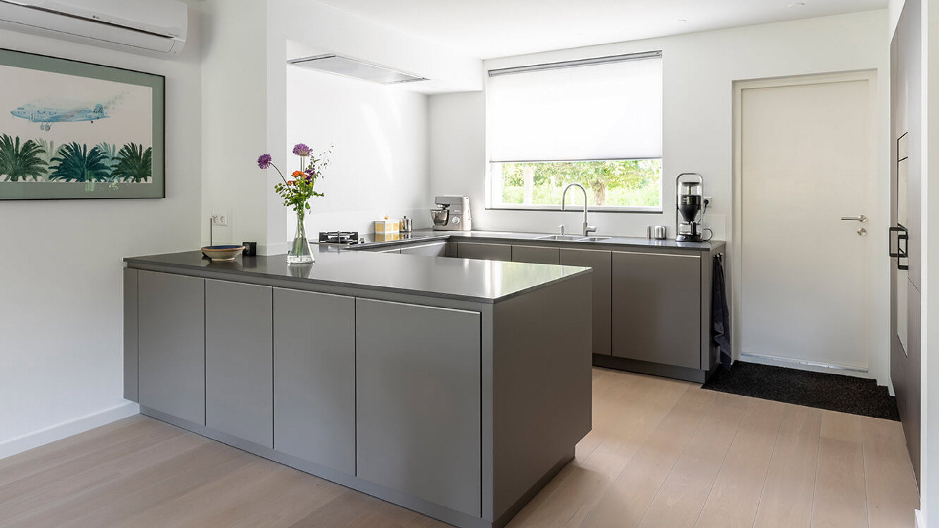 Eerst waren het jasmijnkleurige kastdeuren met een aluminium rand afgewerkt. Nu wordt het een moderne, greeploze keuken, uitgevoerd in de stijl van nu.